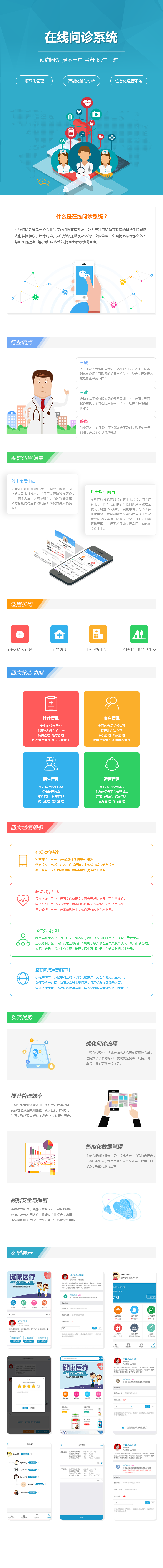 在线问诊系统是一款专业的医疗门诊管理系统,致力于利用移动互联网的科技手段帮助人们掌握健康、治疗病痛。为门诊部提供模块化的全流程管理,全面提高诊疗服务效率,帮助医院提高形象,增加经济效益,提高患者就诊满意度。